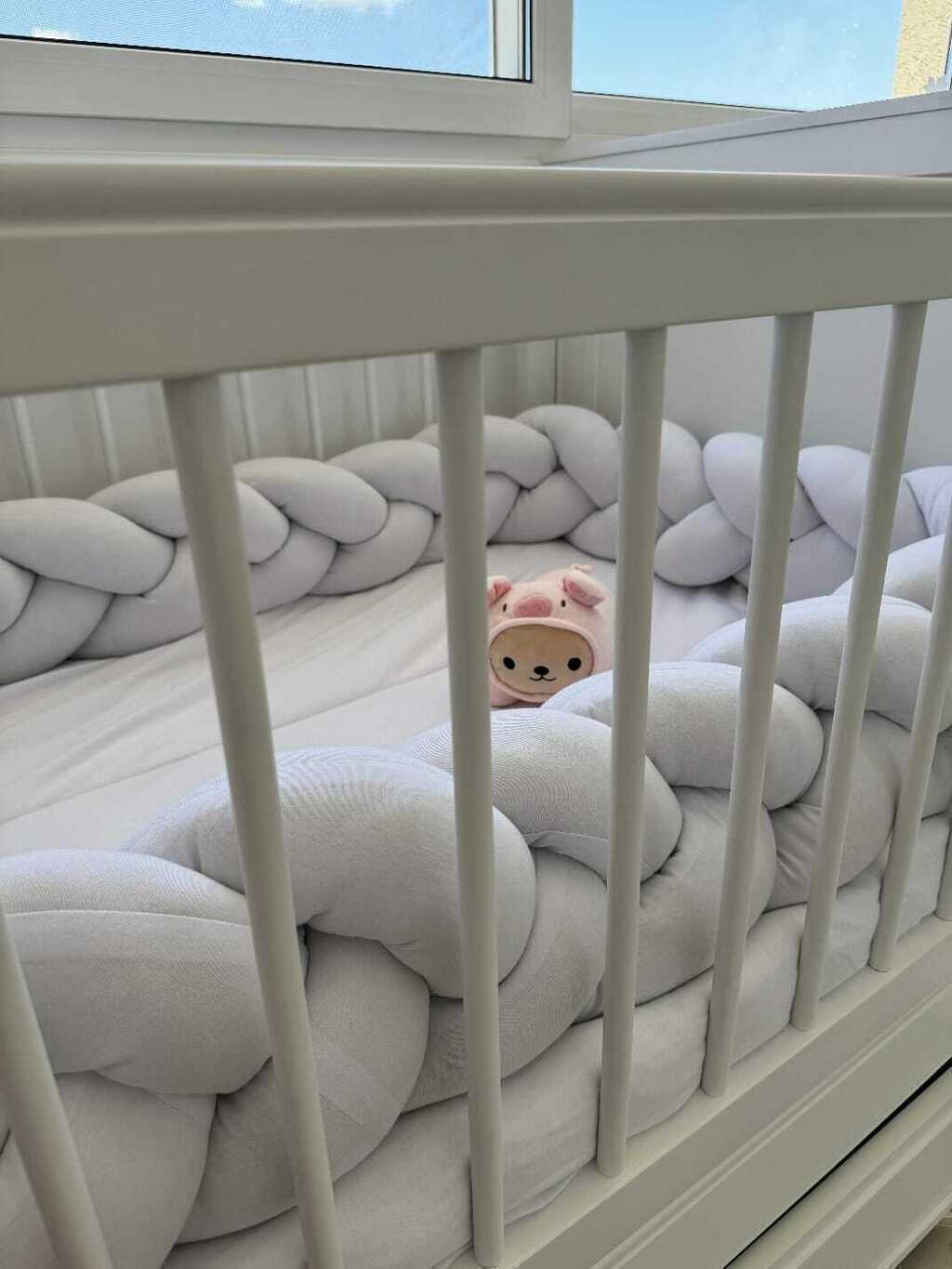 Nuestras chichoneras trenzadas son la elección perfecta para garantizar la seguridad y comodidad de tu bebé. Están confeccionadas con tela de jersey de algodón y rellenas de vellón siliconado hipoalergénico Premium, proporcionando una protección suave y segura.